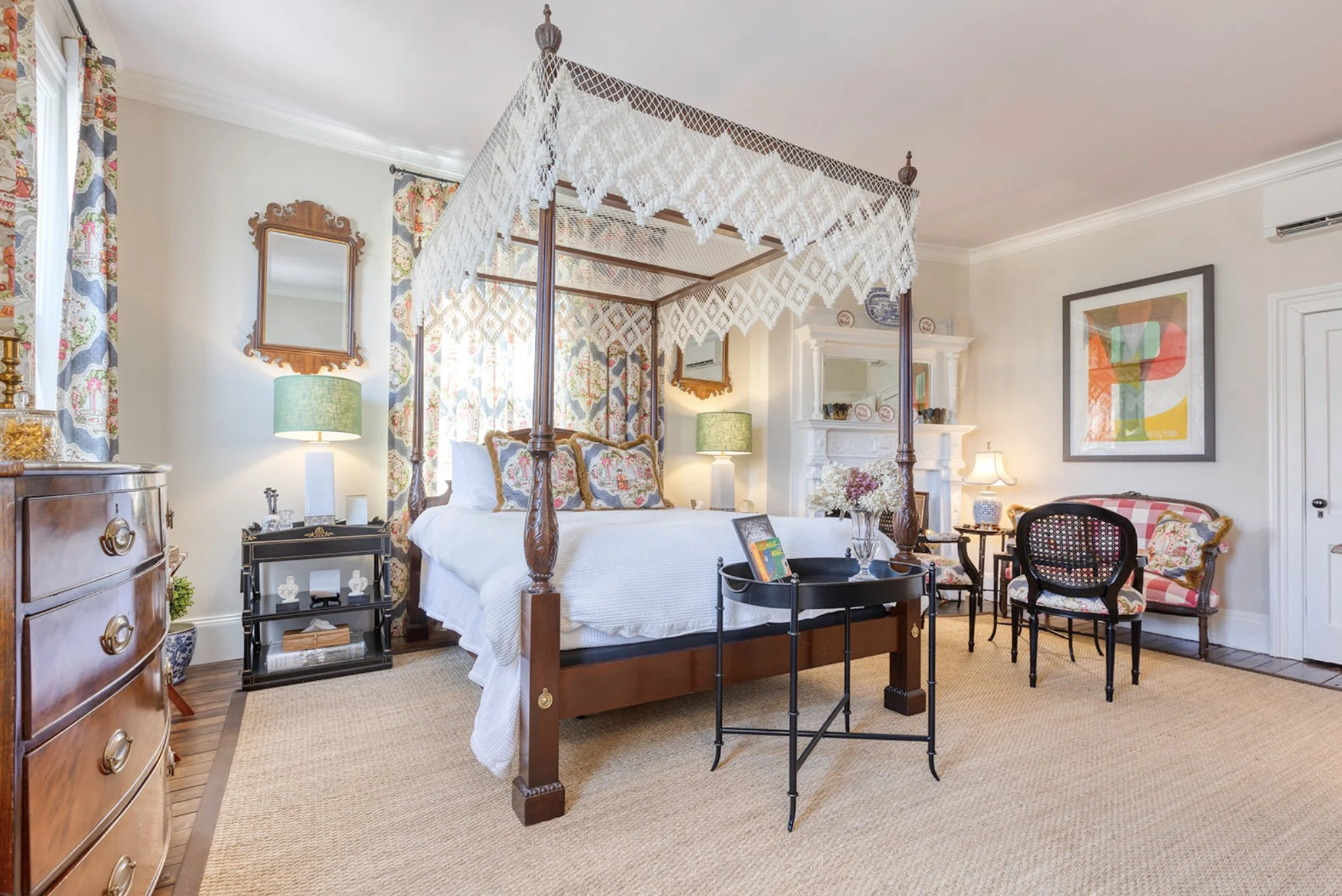 Each guest suite is uniquely curated with a blend of antiques and original fine art. Amenities include: